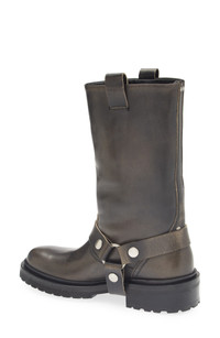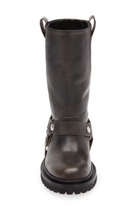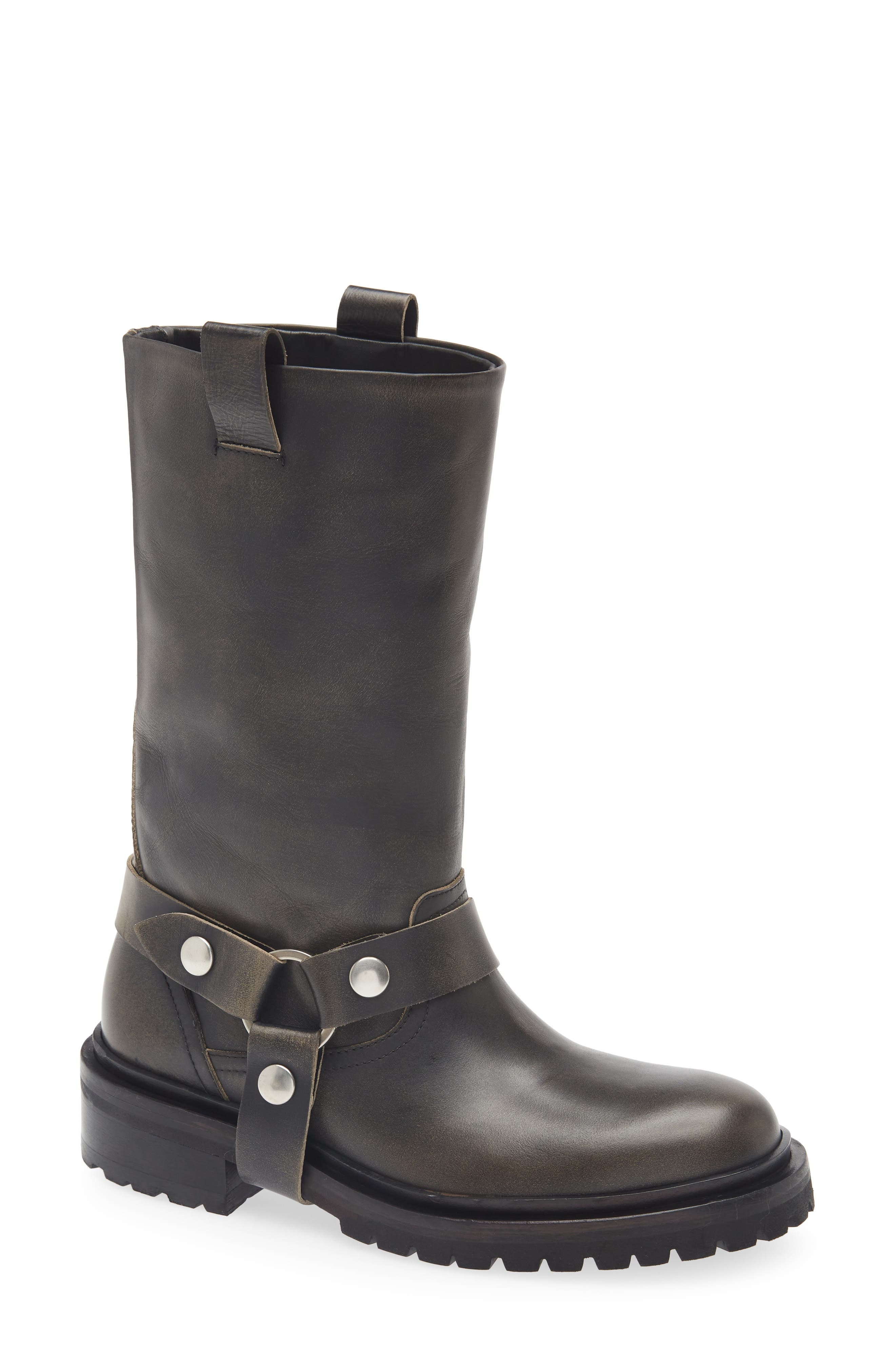 Signature distressing adds to the rough and rugged look of this handmade Italian-leather boot punctuated with glinting galvanic studs and harnesses. Pull-on style Leather upper and lining/rubber sole Made in Italy Designer Shoes