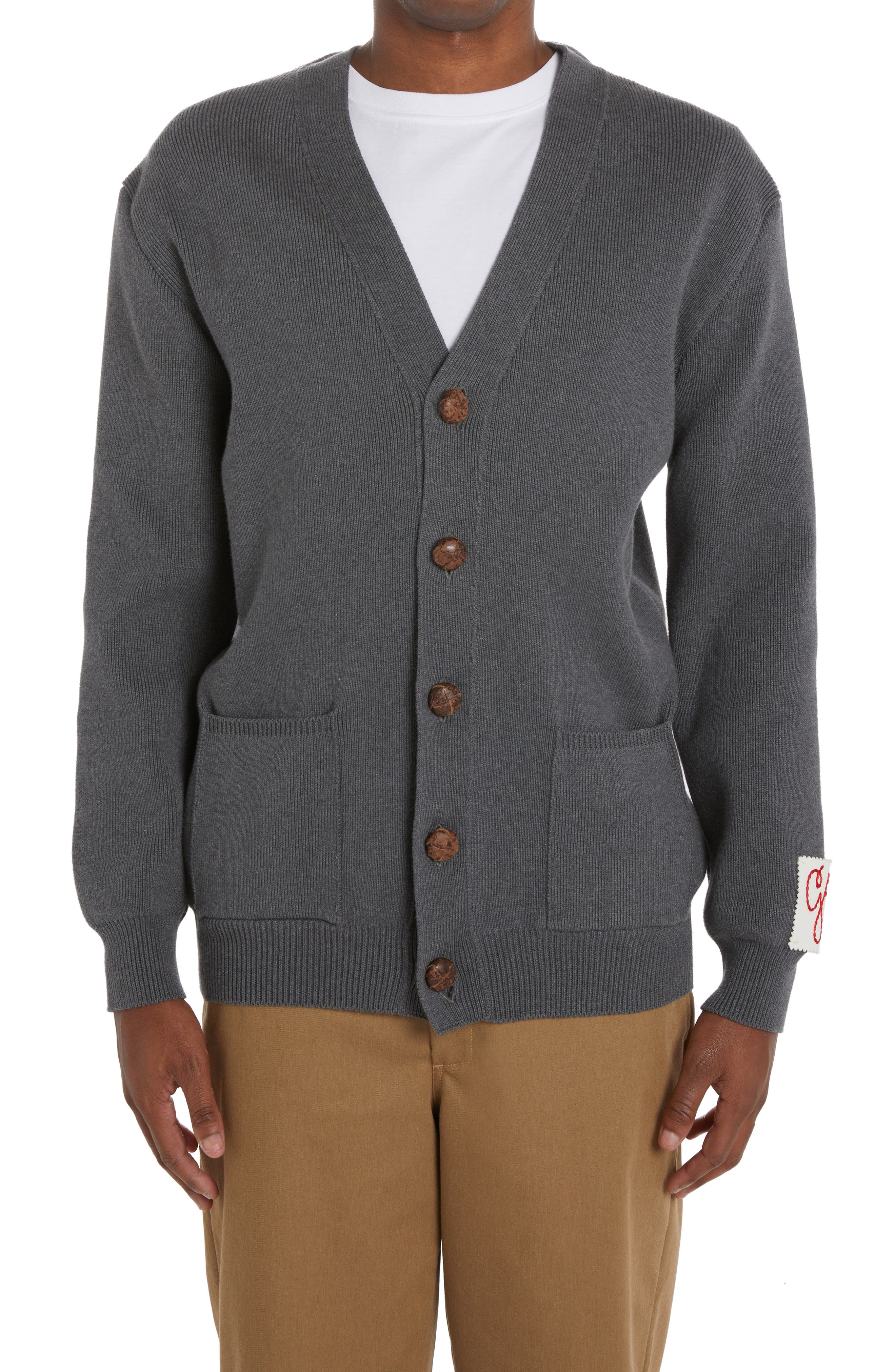 Golden Goose Logo Cotton Blend Cardigan in Dark Grey Melange at Nordstrom