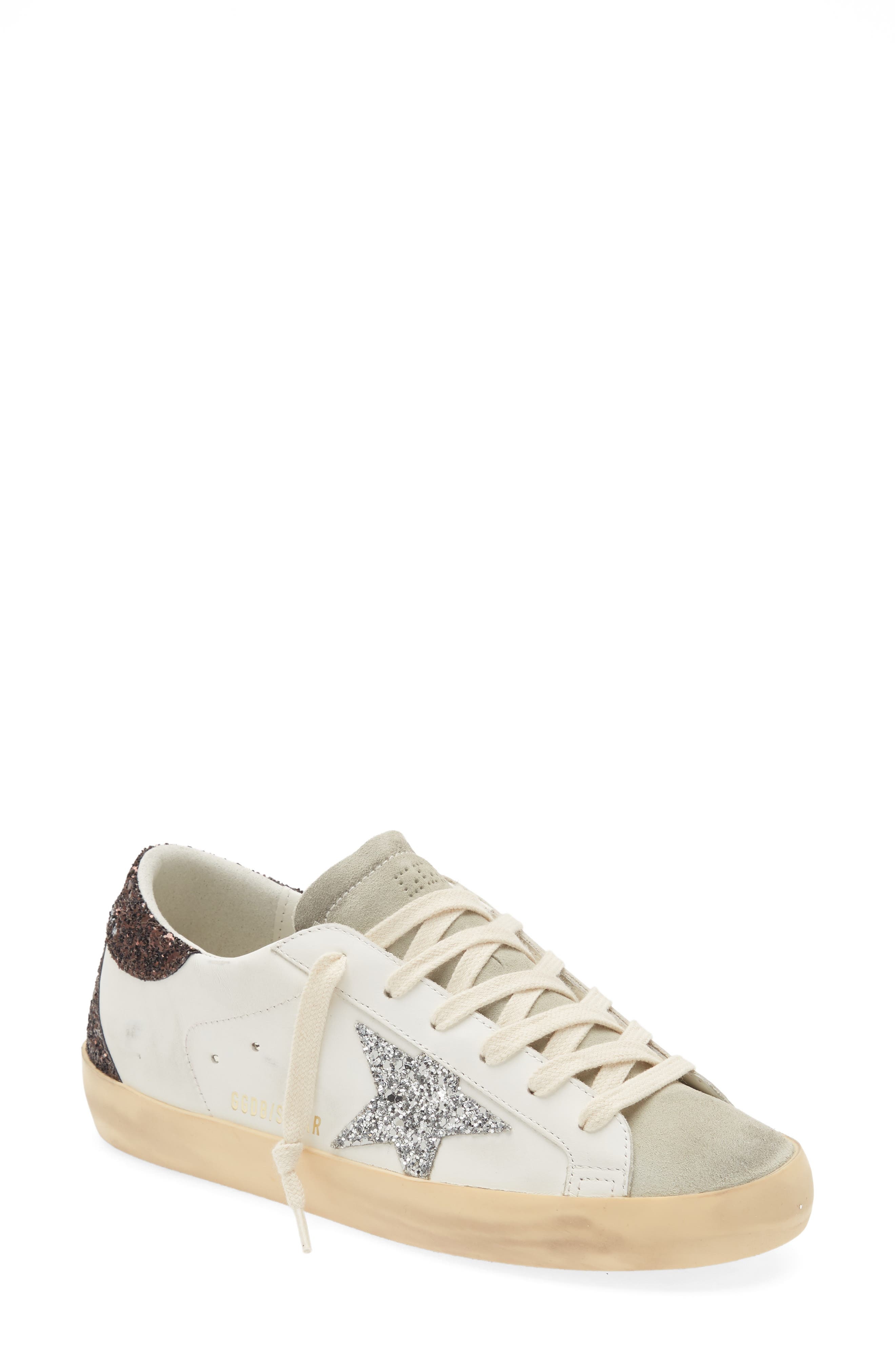 Golden Goose Super-Star Glitter Detail Low Top Sneaker in White/Ice/Silver/Brown at Nordstrom