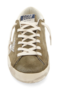 Women’s Super-Star in green suede with glitter star and cream heel tab