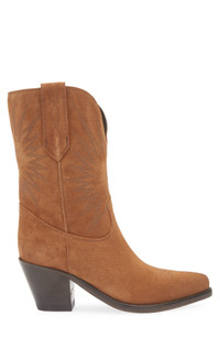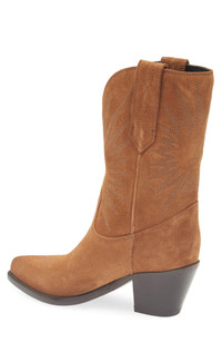 Low Wish Star boots in cognac suede with tone-on-tone embroidered star