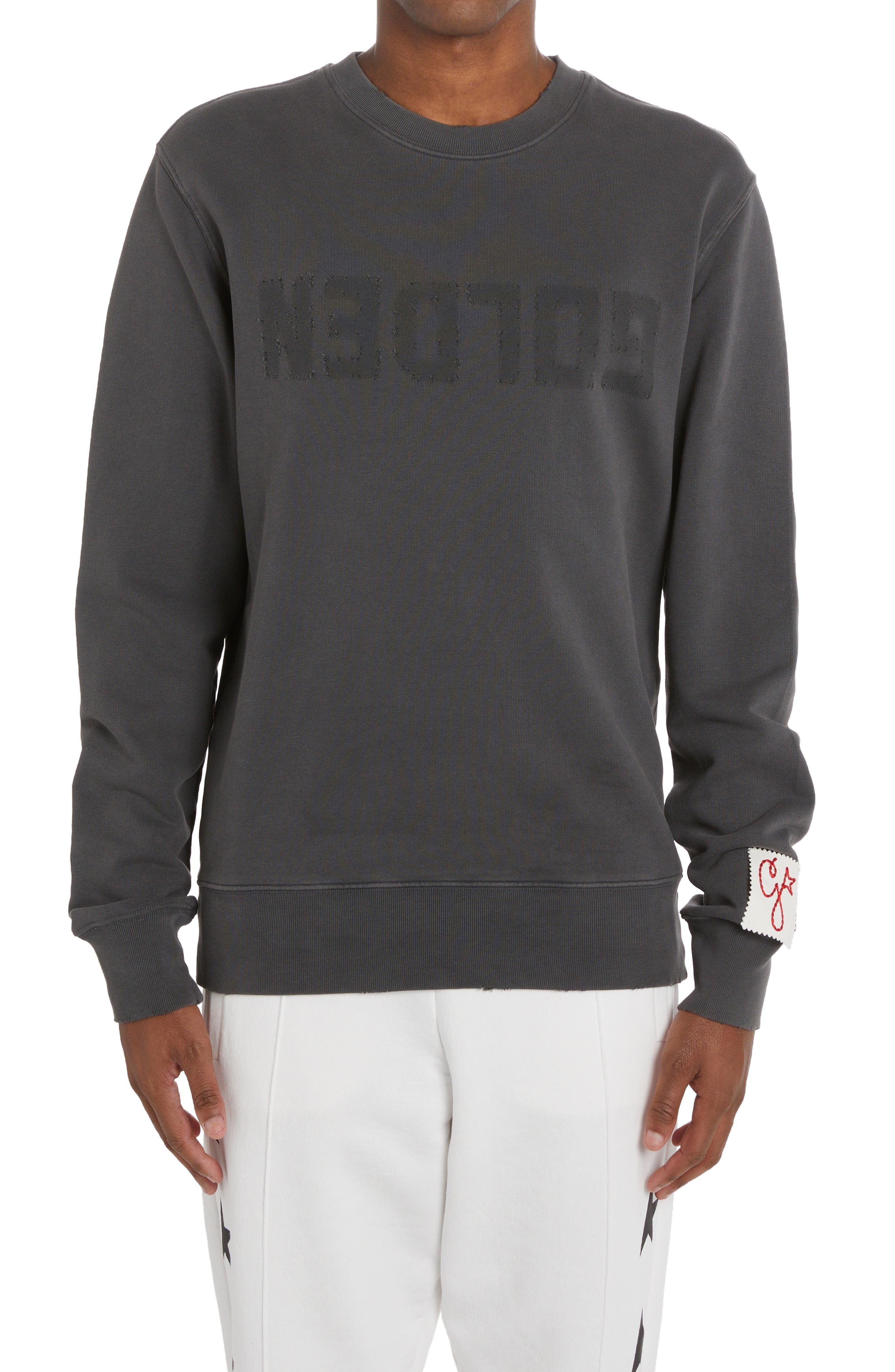 Golden Collection sweatshirt with logo in anthracite gray with a distressed treatment