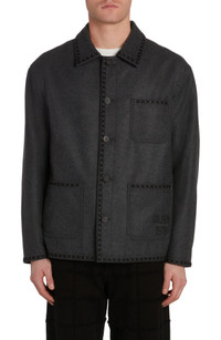 Tonal embroidered detailing underscores the vintage-inspired aesthetic of this boxy work jacket tailored in Italy from virgin wool. Front button closure Spread collar Chest patch pocket; front patch pockets 100% wool Dry clean Made in Italy Designer Clothing