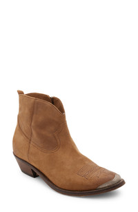 An engraved toe rand and ornate topstitching accentuate the Western charm of a suede ankle boot with a weathered finish that says this isn't your first rodeo. Side zip closure Leather upper, lining and sole Made in Italy Designer Shoes