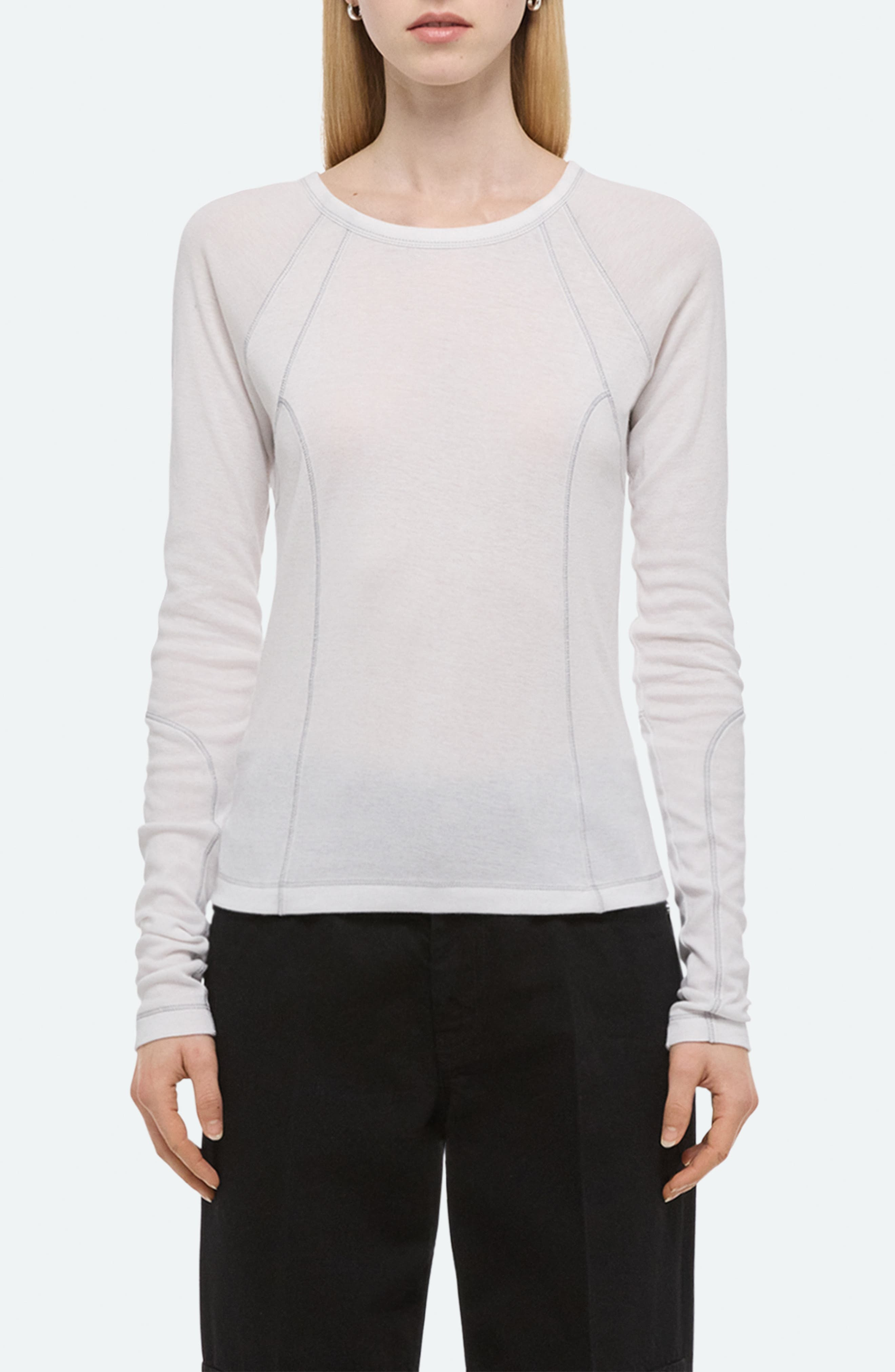 Pronounced stitching furthers the sporty vibes of this close-fitting top cut from a soft cotton-modal blend. 23 1/2" length Crewneck Long sleeves 50% modal, 50% pima cotton Dry clean Imported