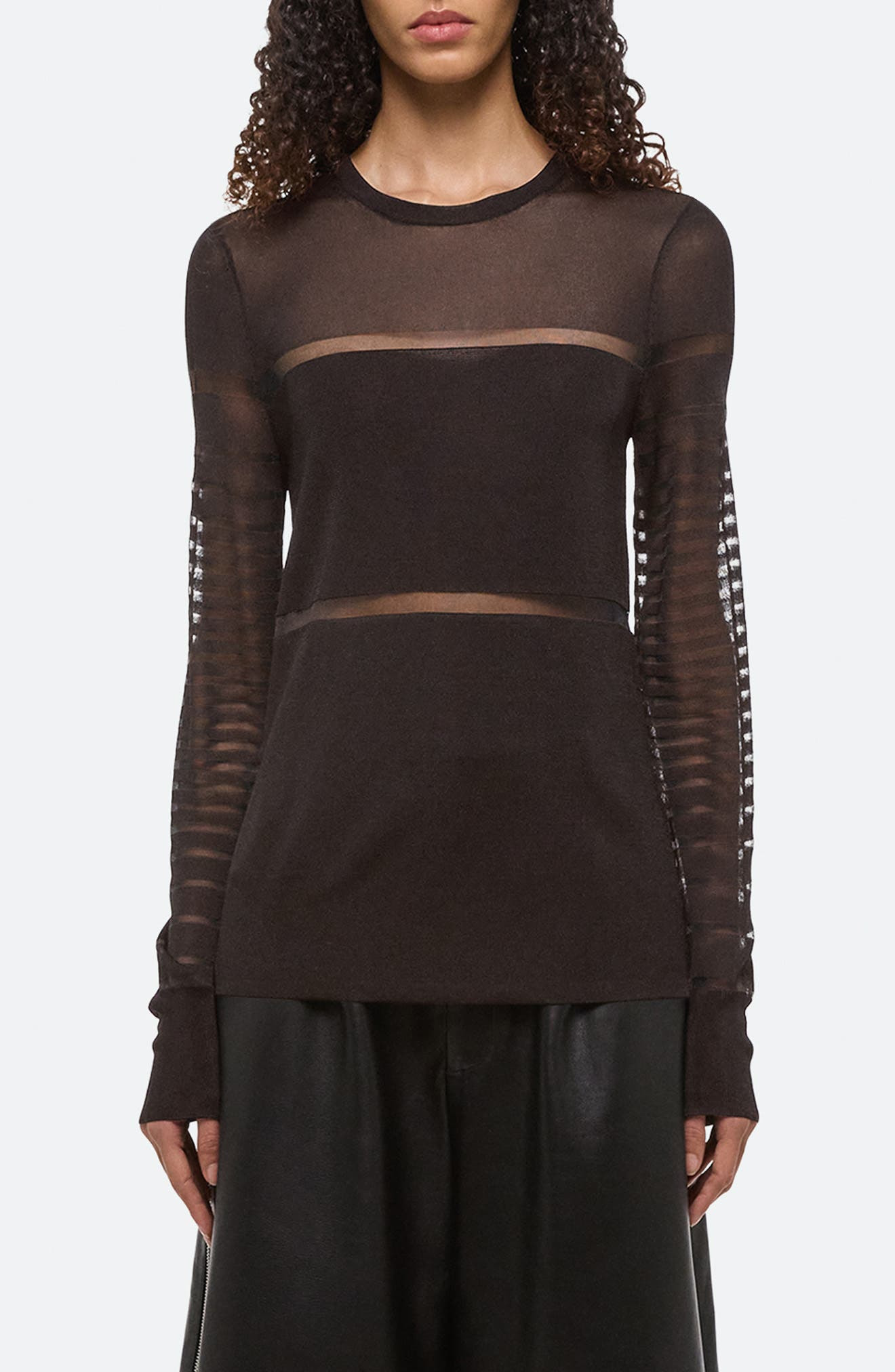 Helmut Lang Burnout Stripe Sheer Top in Espresso