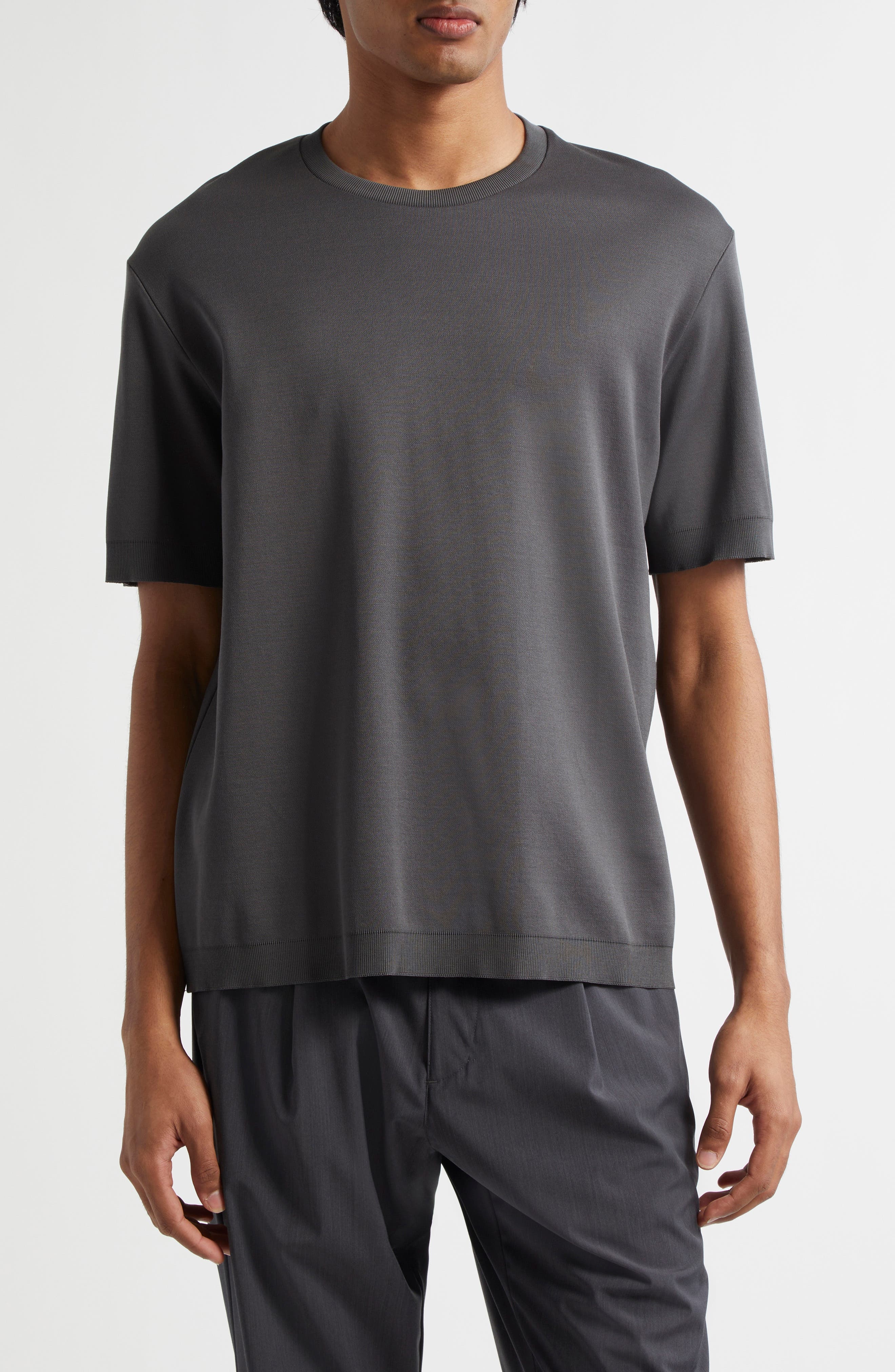 Classic ribbed trim frames this wardrobe-essential crewneck T-shirt crafted from soft, breathable cotton. 28" length (size 52EU) Crewneck Short sleeves Ribbed cuffs and hem 100% cotton Dry clean or machine wash, dry flat Made in Portugal Designer Clothing