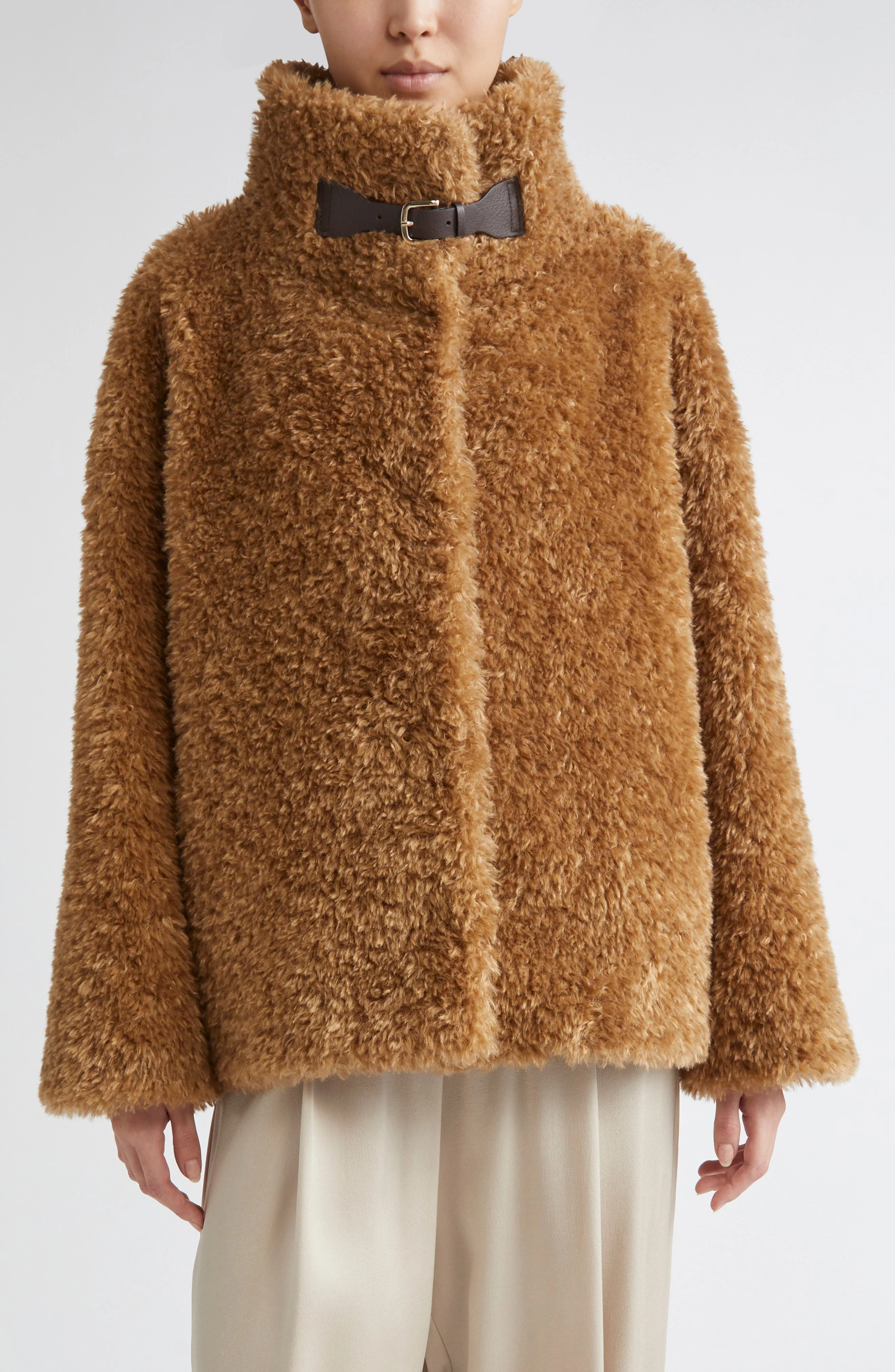 The haute-outerwear label builds out your cold-weather capsule collection with this boxy, oversized jacket made from shaggy faux fur refined with an equestrian-inspired buckled throat latch. Front snap closure Funnel neck Lined 100% polyester faux fur Dry clean Imported Designer Clothing