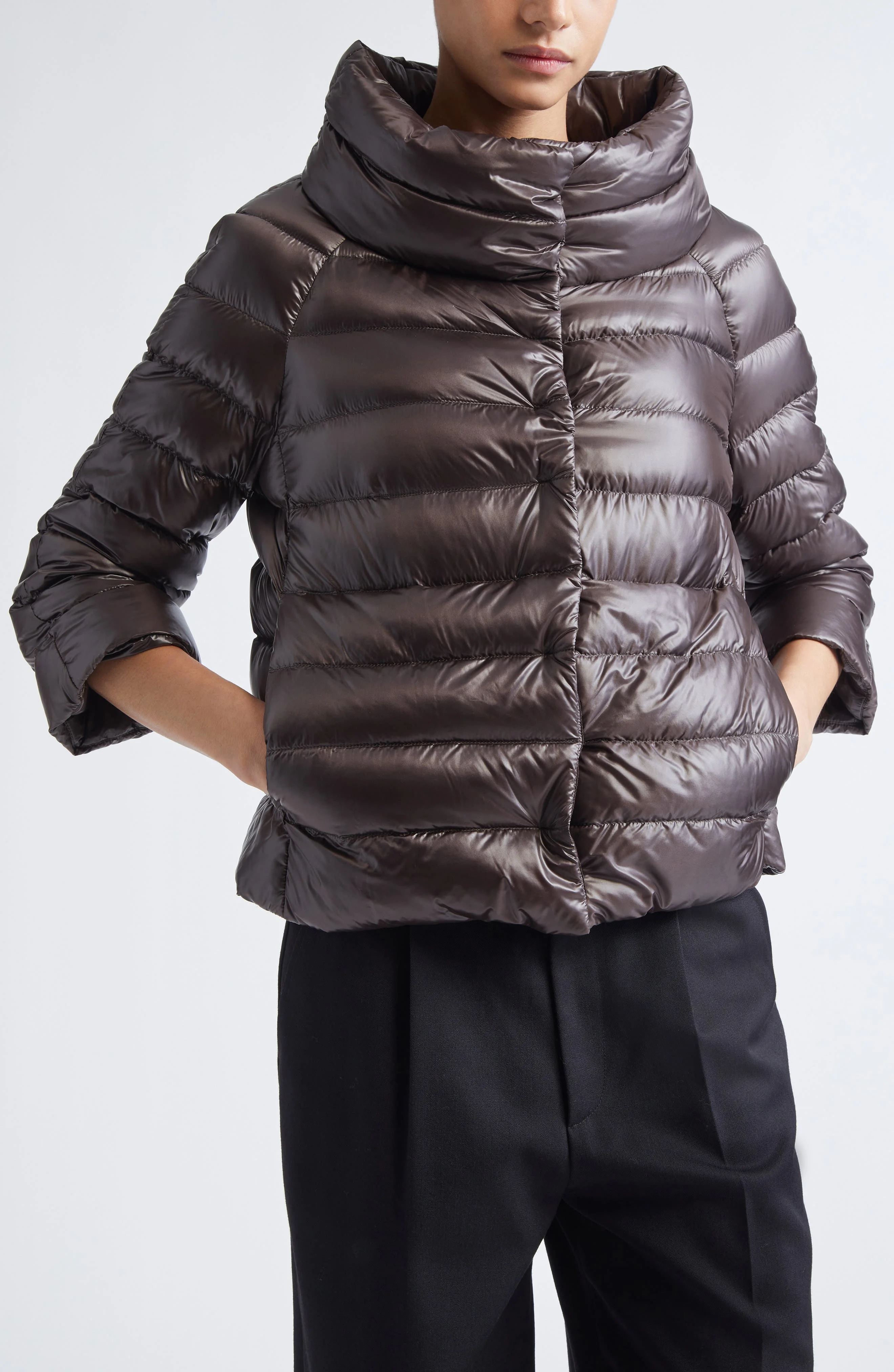Herno Sofia Iconic Down Crop Puffer Jacket in Chocolate at Nordstrom