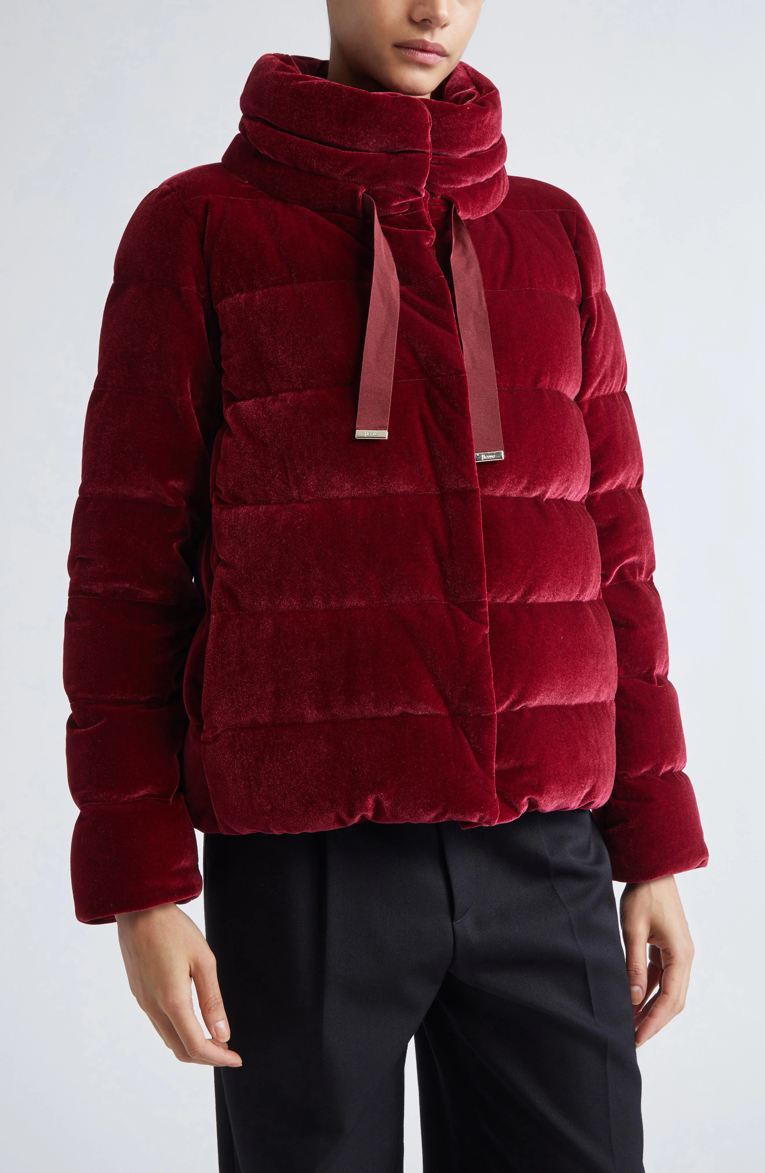 Herno Stretch Velvet Down Puffer Jacket in Burgandy at Nordstrom