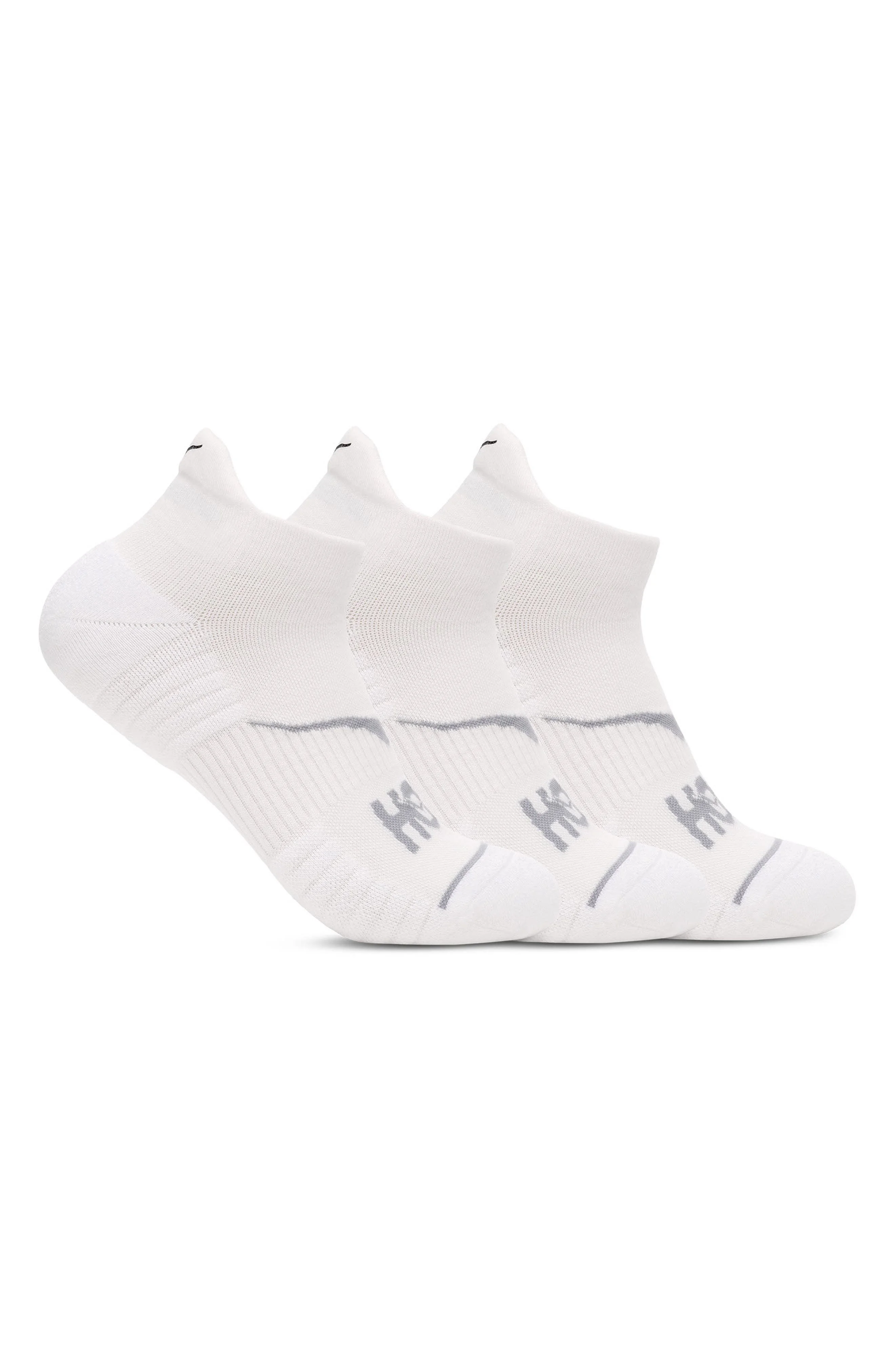 HOKA Run 3-Pack No-Show Socks in White /White /White at Nordstrom