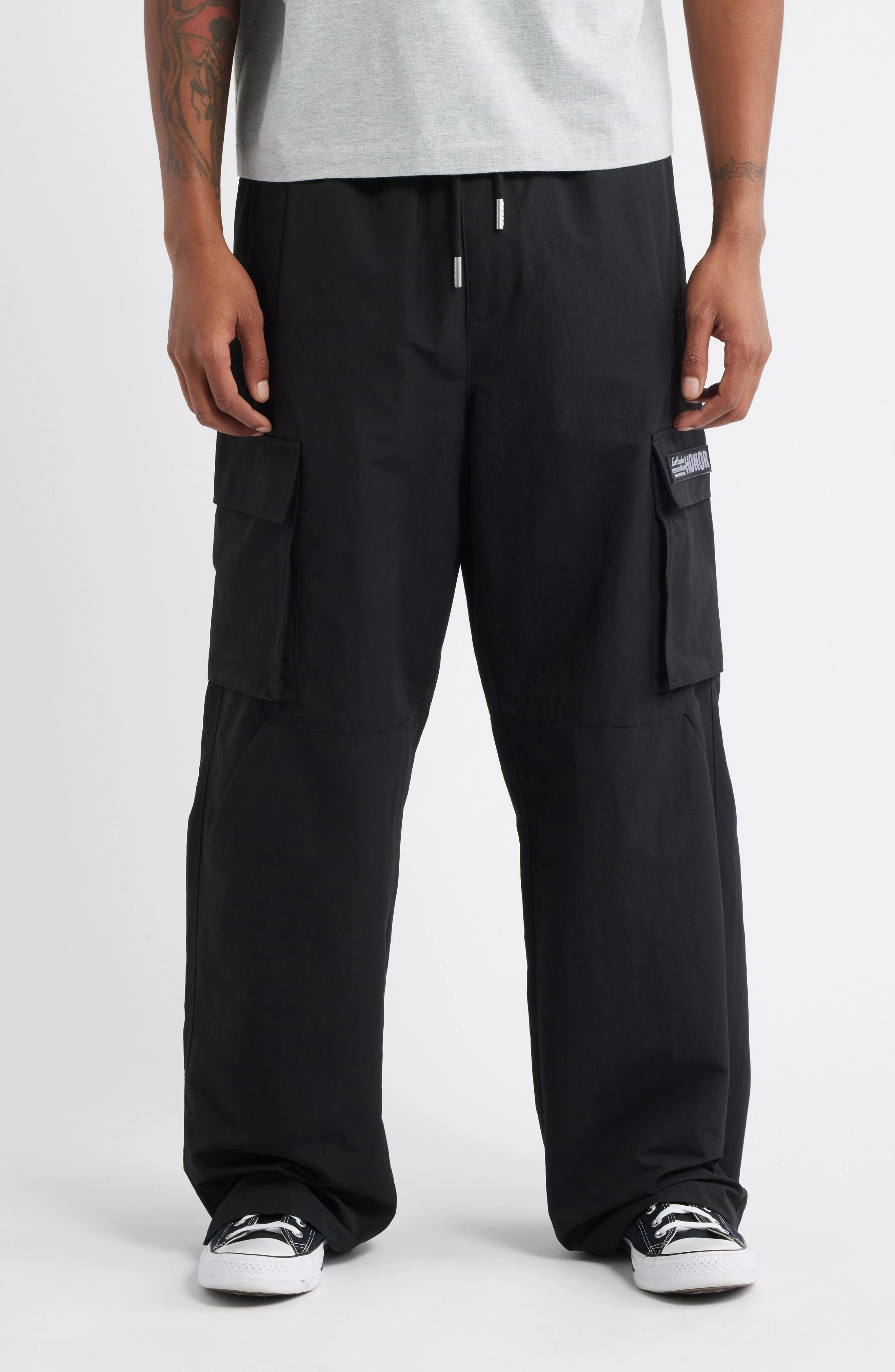 Built for utility and loaded with street-inspired style, these cotton cargo pants feature oversized pockets and a relaxed fit. 32" inseam; 11" leg opening; 14" front rise Zip fly with button closure; elastic/drawstring waist Front slant pockets; cargo flap-patch pockets 100% cotton Machine wash, tumble dry Imported Black Owned/Founded