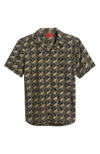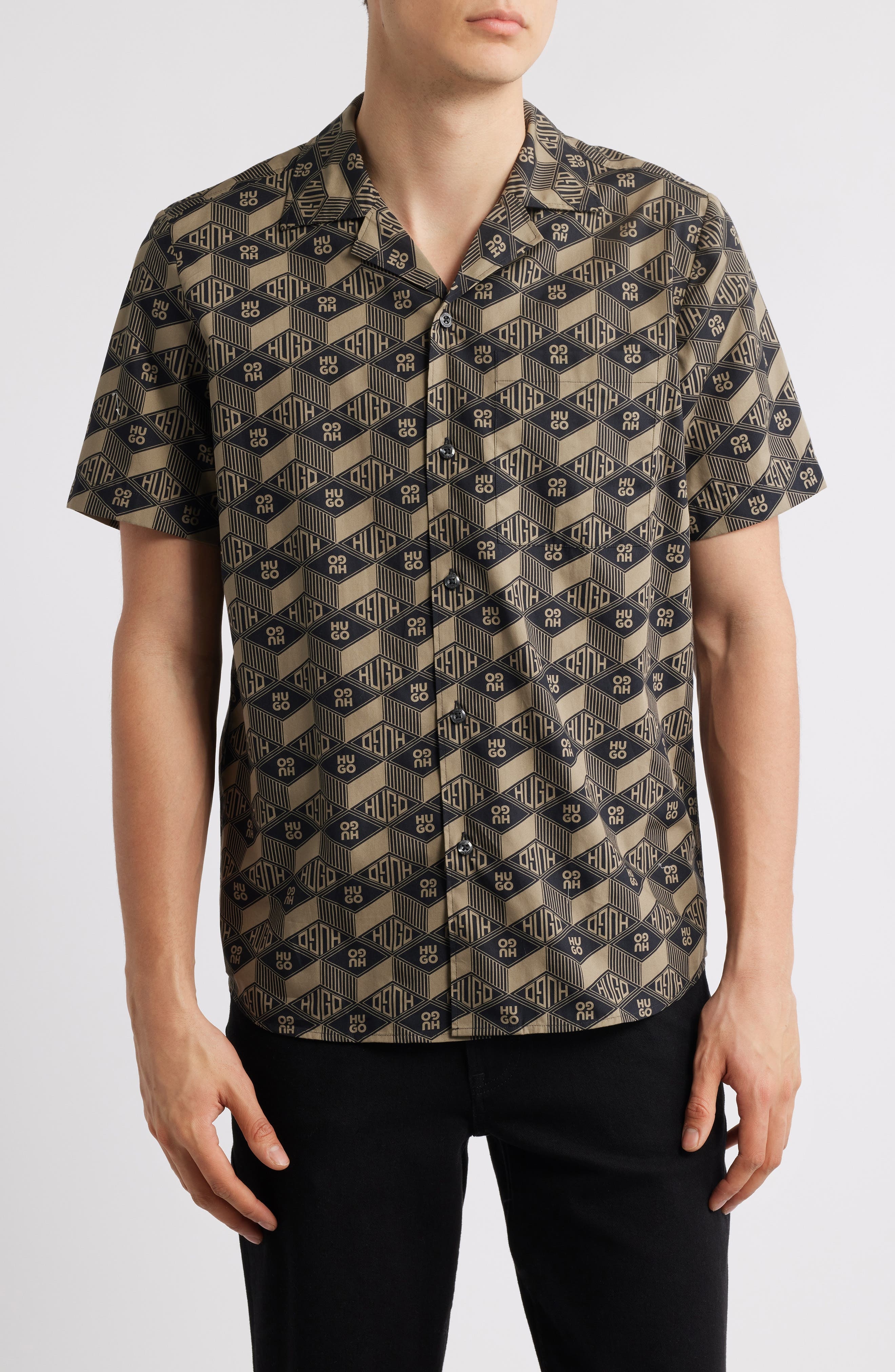 HUGO Ellino Logo Print Camp Shirt in Black at Nordstrom