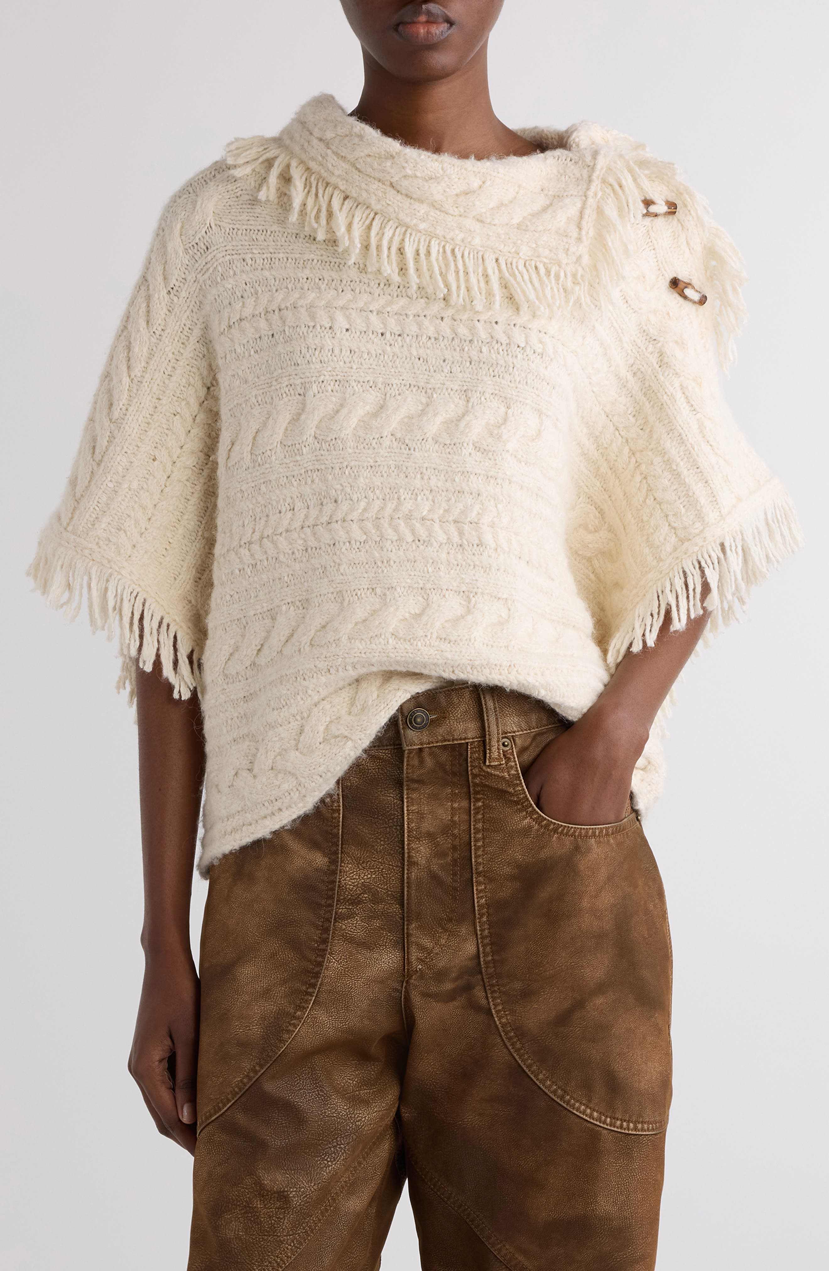 Isabel Marant Étoile Blanche Fringed Poncho Sweater in Ecru at Nordstrom