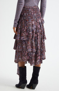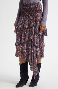 Isabel Marant Étoile Brigitte Smocked Waist Tiered Chiffon Midi Skirt in Plum at Nordstrom