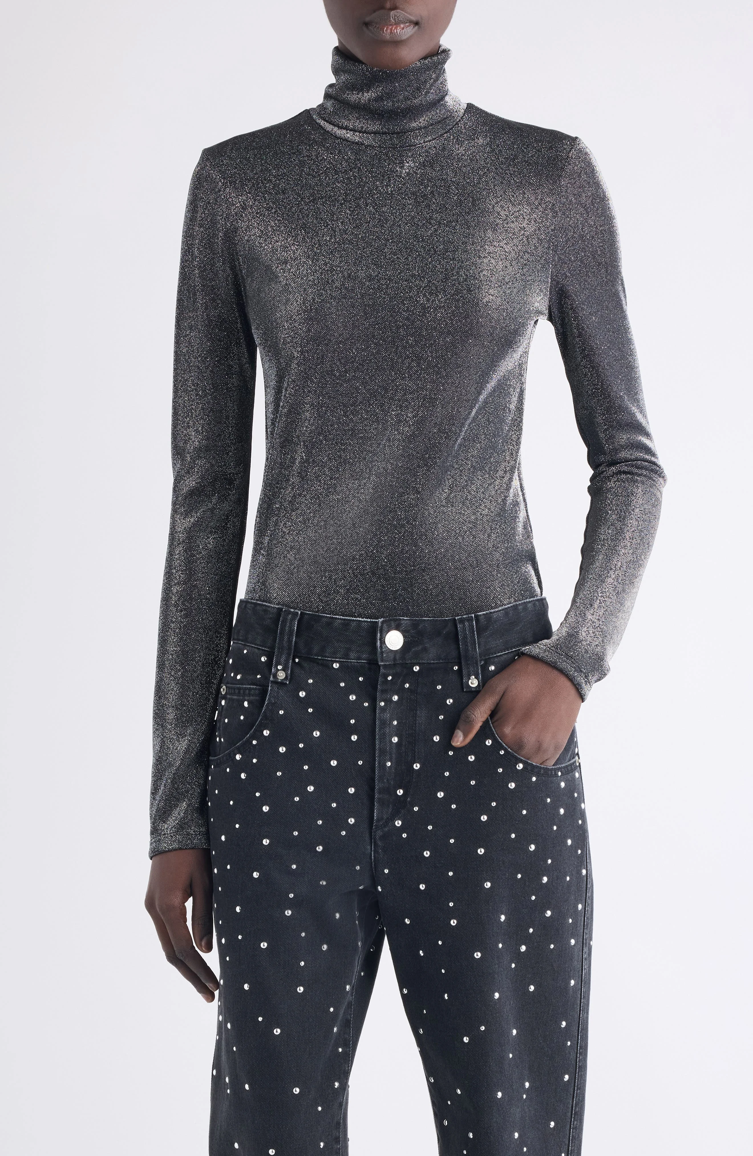 Shimmer with every step you take in this standout turtleneck top. Turtleneck Long sleeves 70% polyamide, 30% metallic fibers Dry clean Made in Portugal