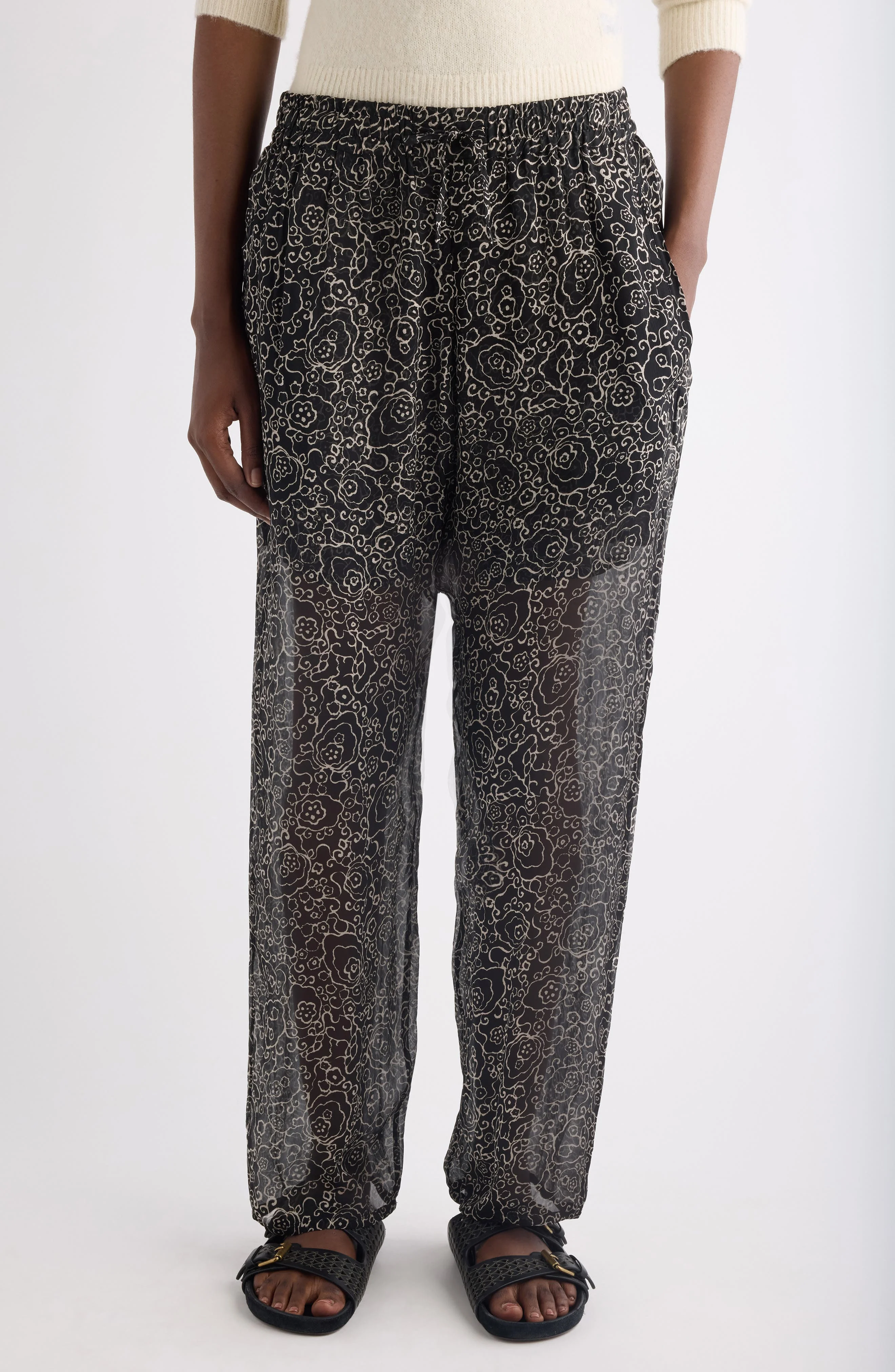 Isabel Marant Étoile Lydna Print Drawstring Straight Leg Pants in Black/Ecru at Nordstrom