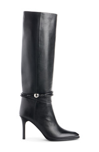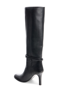A knotted strap with a prominent button—a recurring detail seen on the Parisian designer's fall '25 runway—wraps the ankle of this knee-high boot made from supple calfskin leather. 3 1/2" (89mm) heel Pull-on style Leather upper, lining and sole Made in Italy Designer Shoes