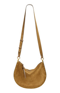 The label's iconic Oskan bag is reinterpreted in a plumper, more pronounced silhouette from velvety calfskin suede with signature golden studs gleaming at the edges. Top zip closure Removable top carry handle; removable, adjustable shoulder strap Interior wall pocket Cotton lining Leather Imported Designer Handbags