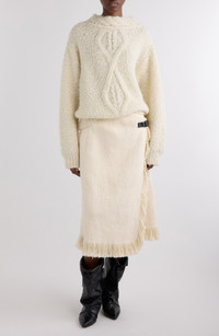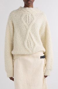 From the texture-focused pre-fall '25 collection, this lookbook-featured sweater leans into the oversize and cozy ends of the boho spectrum an alpaca-blend boucle knit centered with a cable-stitched flourish. Mock neck Long sleeves Ribbed cuffs and hem 87% alpaca, 13% polyamide Dry clean Made in Italy Designer Clothing