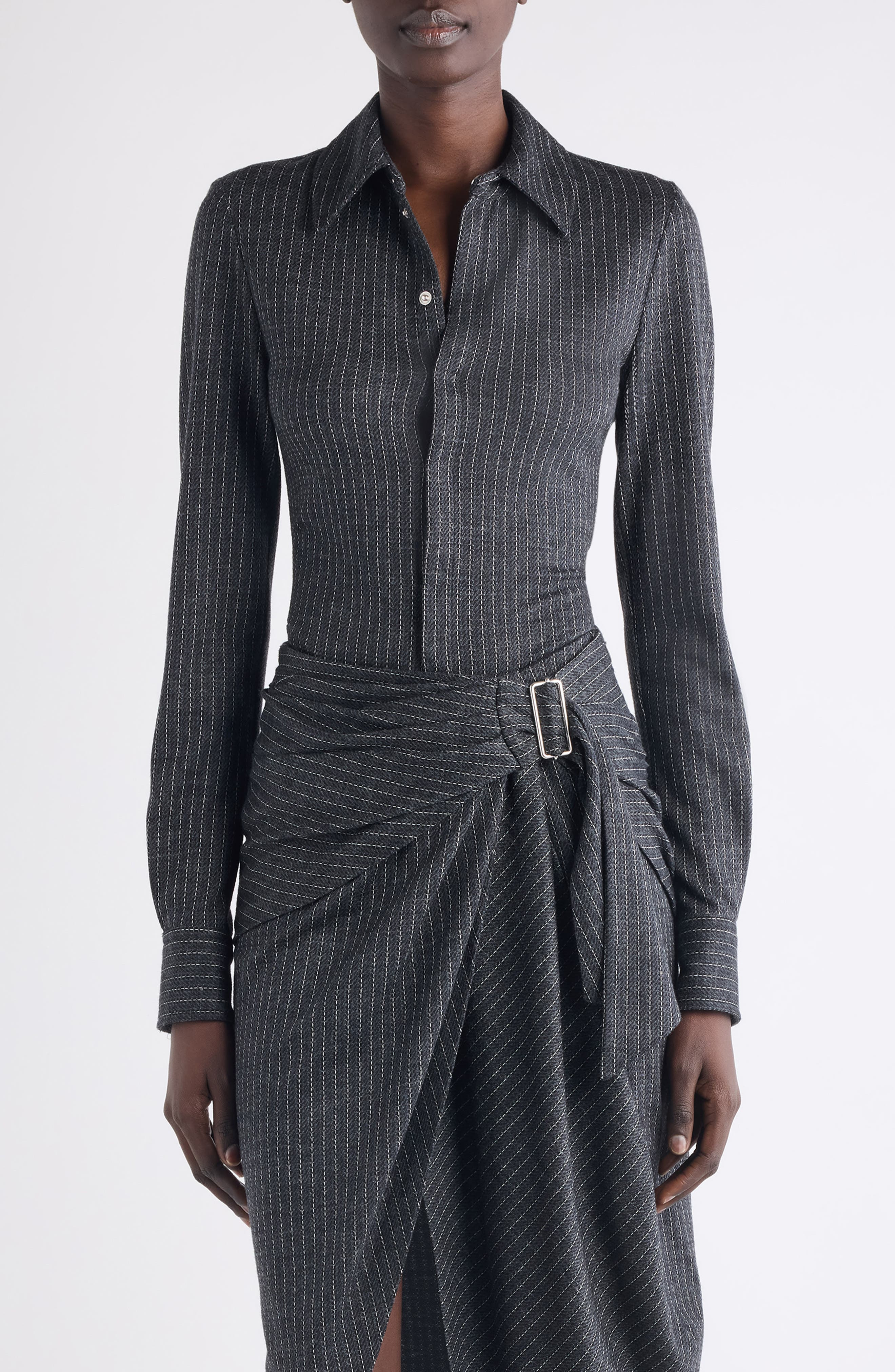 Isabel Marant Romeo Pinstripe Virgin Wool Blend Button-Up Shirt in Anthracite at Nordstrom
