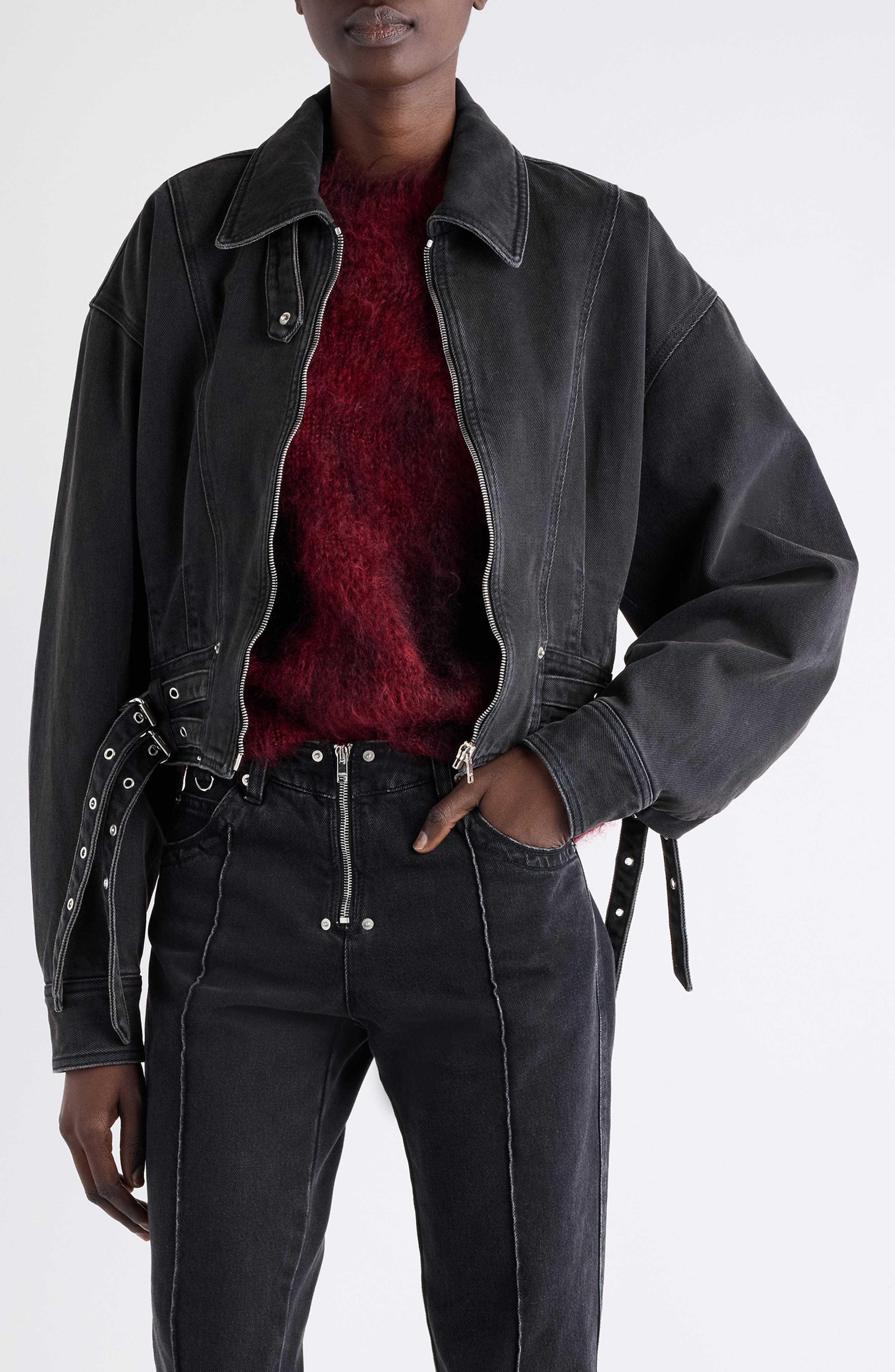Isabel Marant Santa Crop Denim Jacket in Black at Nordstrom