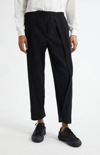 Issey Miyake's signature garment-pleating technique gives modern shape to these wrinkle-resistant and travel-friendly pants in a relaxed straight-leg cut sans side seams. 26 1/2" inseam; 16" leg opening; 13" front rise; 14" back rise (size 2) Button fly; elastic waist with internal drawcord Side-seam pockets 100% polyester Machine wash, line dry Made in the Republic of the Philippines Designer Clothing Asian & Pacific Islander Owned/Founded
