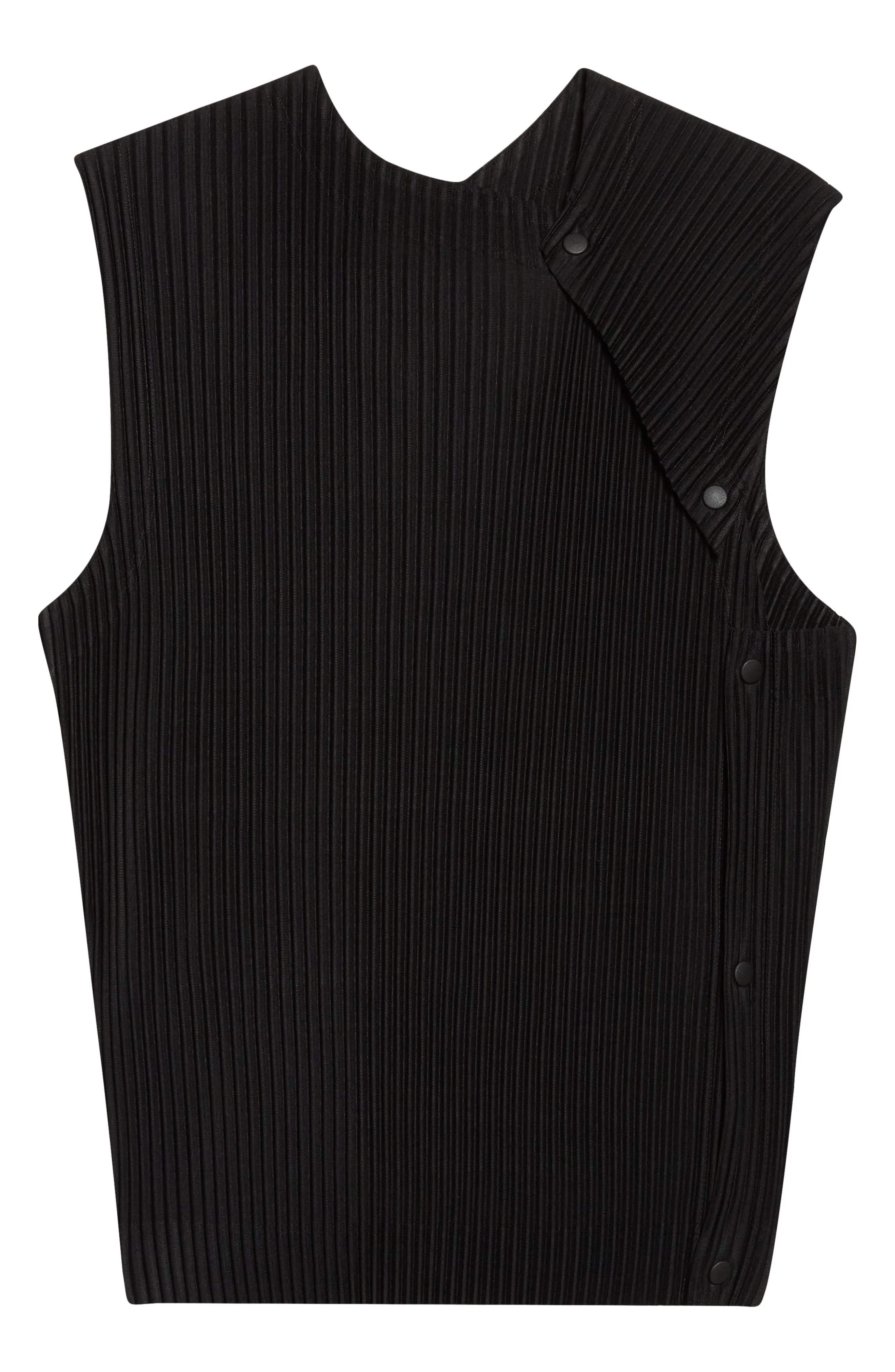 Patterned after the contours of a flattened stone, the panels of this sleeveless top overlap and snap into an array of styling options. Softly structured with Issey Miyake's signature garment-pleating technique, this convertible piece offers wrinkle resistance and packable ease in one low-maintenance, high-style design. Front snap closure V-neck Sleeveless 100% polyester Machine wash, dry flat Made in Japan Designer Clothing Asian & Pacific Islander Owned/Founded