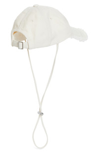 Gleaming hardware and a raw-edged bill bring distinctive detailing to a ball cap made of soft cotton twill and fitted with a pair of adjustable straps. 3" brim width Adjustable back strap; drawcord-toggle chin strap 100% cotton Hand wash; flat dry Imported