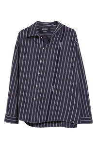 Jacquemus La Chemise Cuadro Asymmetric Button-Up Shirt in Business Logo Stripes Navy at Nordstrom