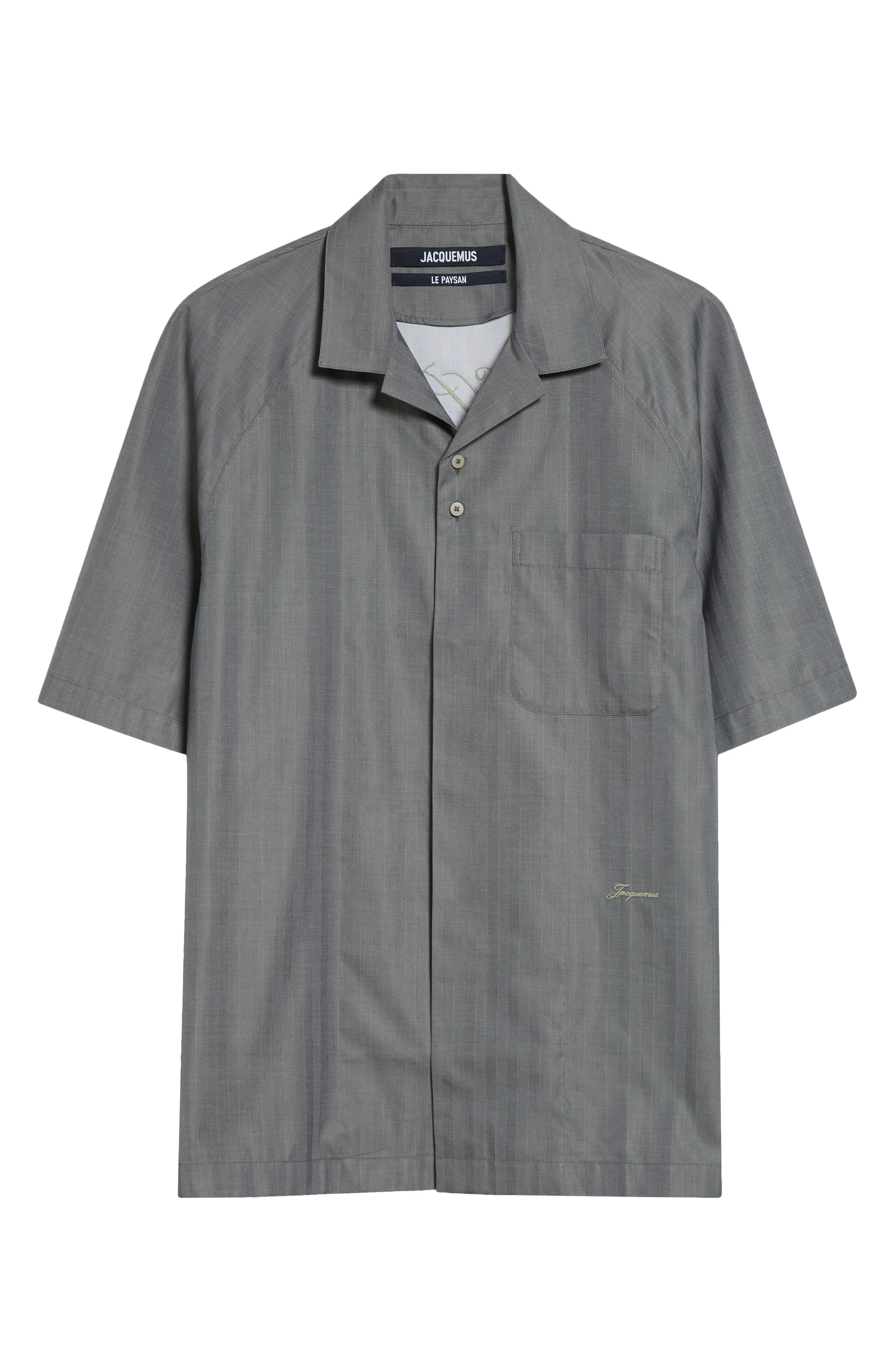 Woven-in tonal stripes subtly pattern this cotton camp shirt in a roomy raglan-sleeve cut and is signed front and back with embroidered monogramming and a J-shaped locker loop. Partially hidden–button placket Notched collar Elbow-length sleeves Chest patch pocket Side slits 100% cotton Dry clean Made in Portugal Designer Clothing
