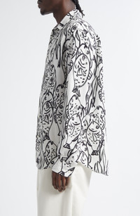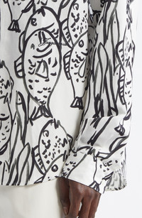 Evoking the serenity of an underwater tableau, this fluid button-up is adorned with a painterly fish motif, a standout from the label’s spring '25 La Croisiere collection. Front button closure Spread collar Long sleeves with button cuffs Curved hem 50% viscose, 25% linen, 25% rayon Dry clean Made in Portugal Designer Clothing
