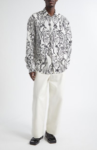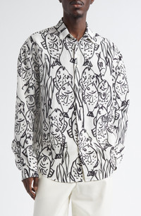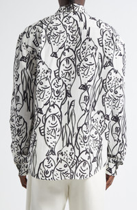 Jacquemus La Chemise Simon Fish Print Button-Up Shirt in Fish Black And White at Nordstrom
