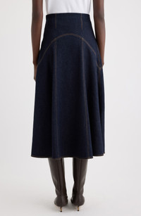 Architectural yet light, this tailored denim midi maps soft arcs along the frame to build a gentle cocoon that opens into a modern flare. The label’s touch shows in the clean lines and measured volume that keep movement easy. Hidden side-zip closure Cotton lining 93% cotton, 6% cashmere, 1% elastane Dry clean Made in France Designer Clothing