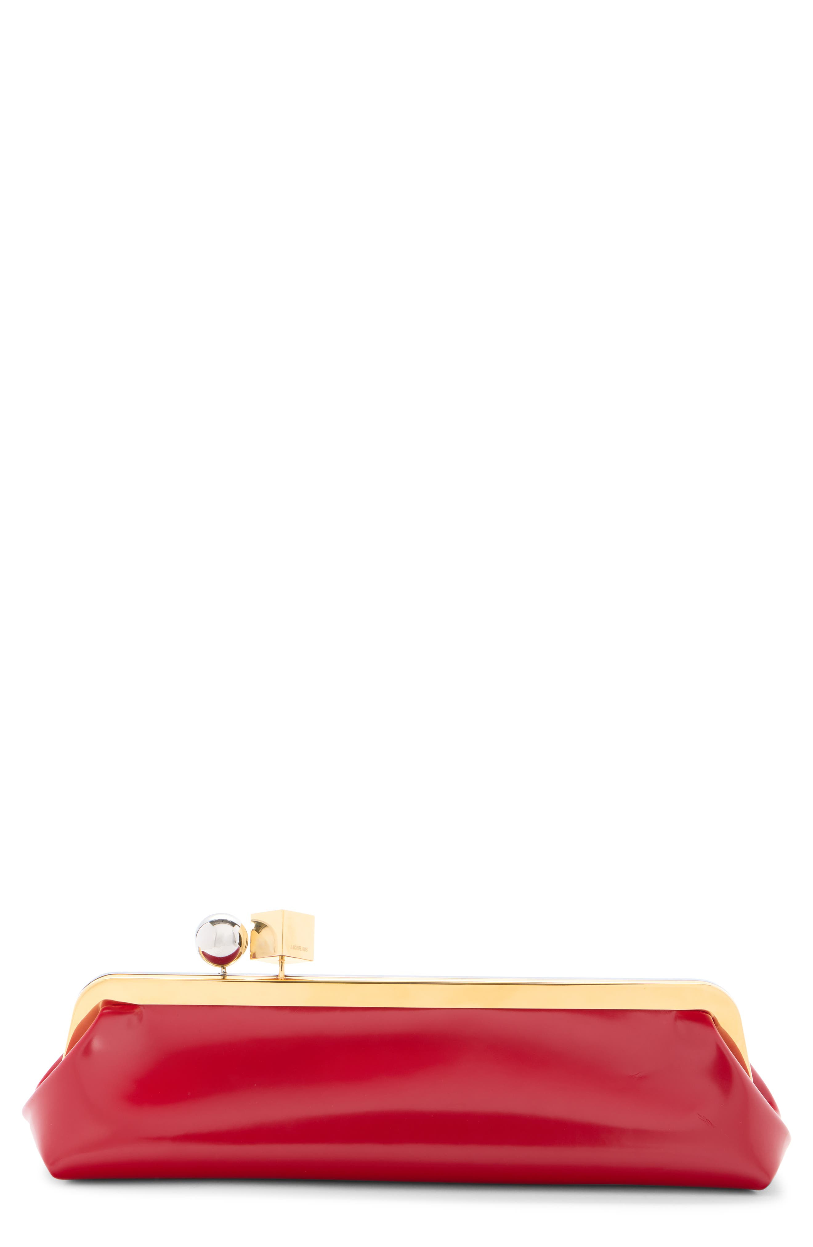 Signature sphere and cube charms detail the vintage-inspired frame closure on a dramatically elongated clutch shaped from glossy patent calfskin. Magnetic frame closure Shoulder strap Cotton lining Leather Made in Italy Designer Handbags