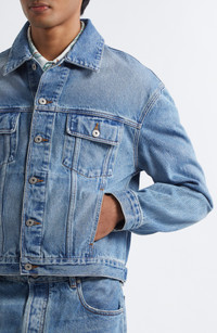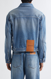The French luxury label known for its daring proportions revamps a classic trucker jacket cut from nonstretch denim with an enlarged logo patch at the back. Front button closure Point collar Button cuffs Chest button-flap patch pockets; side-seam pockets Adjustable button side tabs 100% cotton Dry clean Made in Portugal Designer Clothing