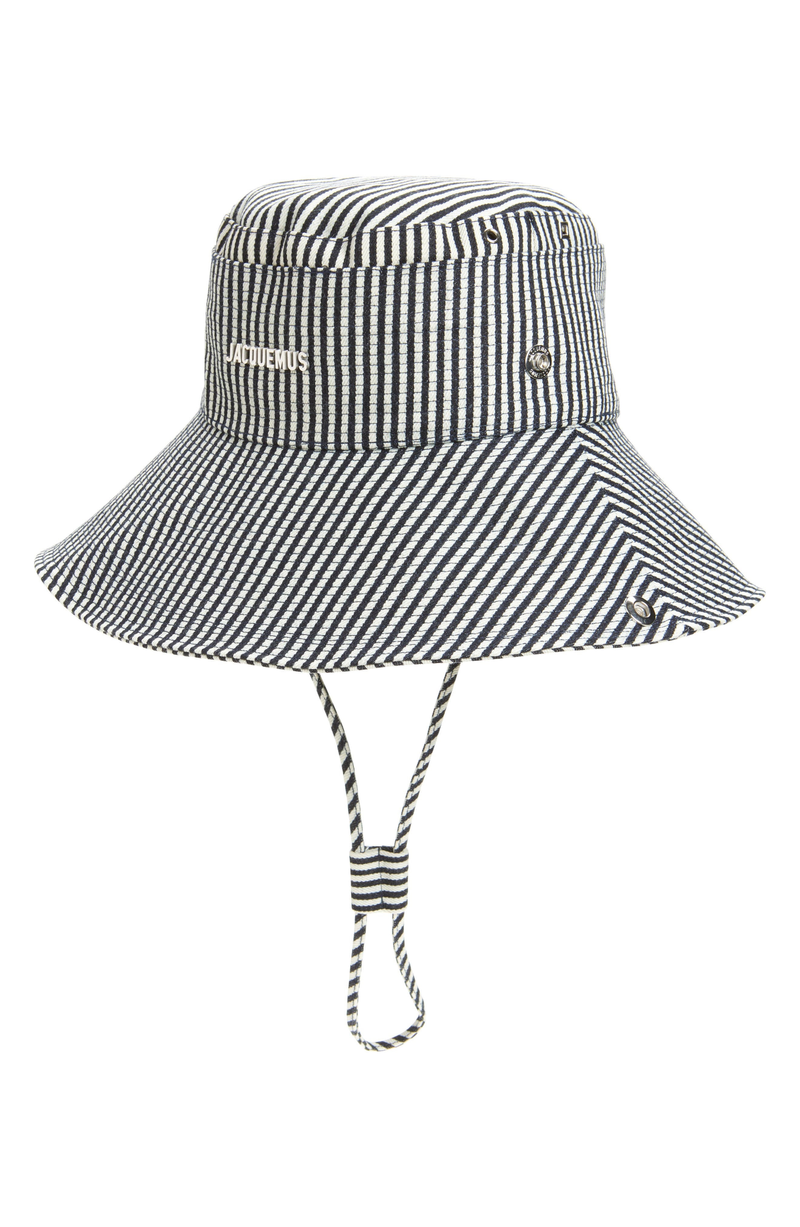 Jacquemus Le Bob de-Nîmes Cotton Twill Bucket Hat in Navy/White Stripe 3Fu at Nordstrom