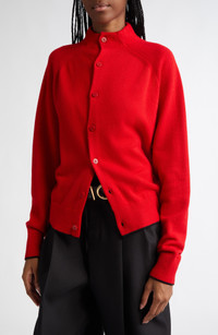 Raglan sleeves frame this ultrasoft cardigan crafted from luxe cashmere and topped with a mock neck for elevated coverage. 21 1/2" length (size 4US/36FR) Front button closure Mock neck Long sleeves with ribbed cuffs 100% cashmere Dry clean or hand wash, dry flat Made in Portugal Designer Clothing