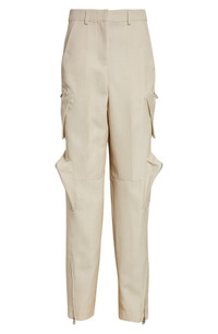 Sculptural pockets and zip cuffs define a pair of high-waist cargo pants warmed with a bit of virgin wool. Zip fly with hook-and-bar closure Front slant pockets; zip cargo pockets Zip cuffs Lined 63% polyester, 37% virgin wool Dry clean Imported Designer Clothing