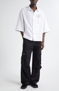 A webbing belt accentuates the utility aesthetic of these cargo pants crafted in France from a breathable blend of cotton and linen. Zip fly with button closure Removable belt Cargo snap-flap pockets; back snap-flap patch pocket 82% cotton, 18% linen Dry clean Made in France Designer Clothing