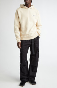 Relaxed and comfortable, this soft cotton-fleece hoodie is minimally detailed with an embroidered logo on a tonal band of grosgrain. 27 1/2" length (size Medium) Fixed hood Ribbed cuffs and hem 100% cotton Machine wash, dry flat Made in Portugal Designer Clothing