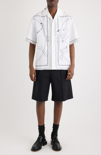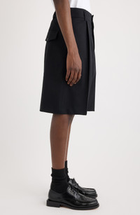 The French label’s tailoring pedigree shows in these shorts cut from stretch-enhanced virgin wool with a clean, controlled drape. Knife pleats open at the waist to release measured volume through a wide-leg silhouette that reads precise yet relaxed. Zip fly with hook-and-bar closure Side-seam pockets; back button-flap pockets Lined 95% virgin wool, 5% elastane Dry clean Imported Designer Clothing