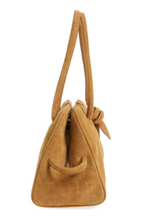 Inspired by retro bowling bags, this scaled-down style was featured on the label's 'La Croisiere' runway and crafted in Italy from croc-embossed suede. A knotted accent details one of the handles, adding a playful element of dimension to the structured silhouette. Two-way top-zip closure Top carry handles Interior zip pocket Structured silhouette with flat base for stability Cotton lining Leather Made in Italy Designer Handbags