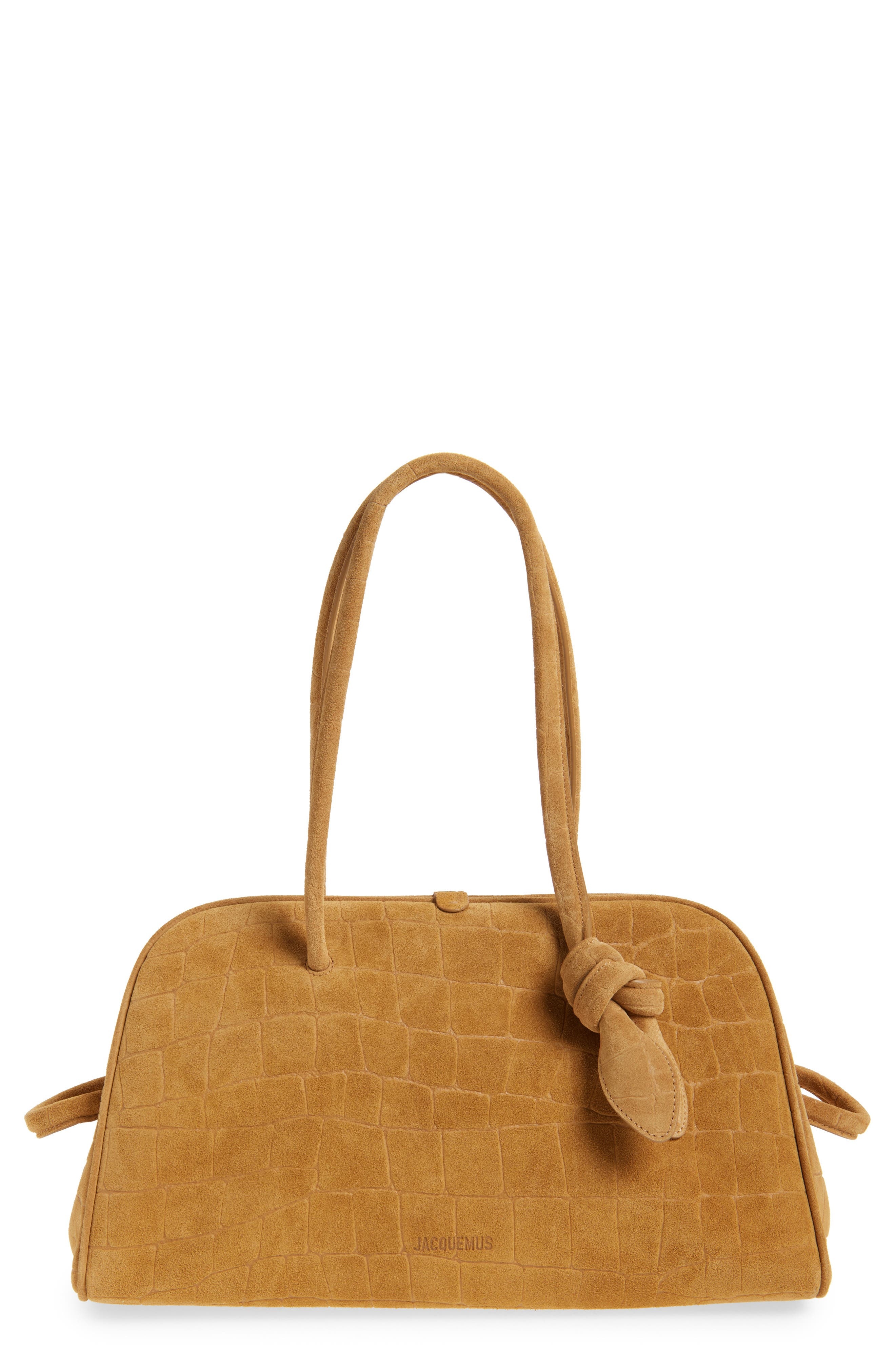 Jacquemus Le Turismo Croc Embossed Suede Bowling Bag in Camel at Nordstrom