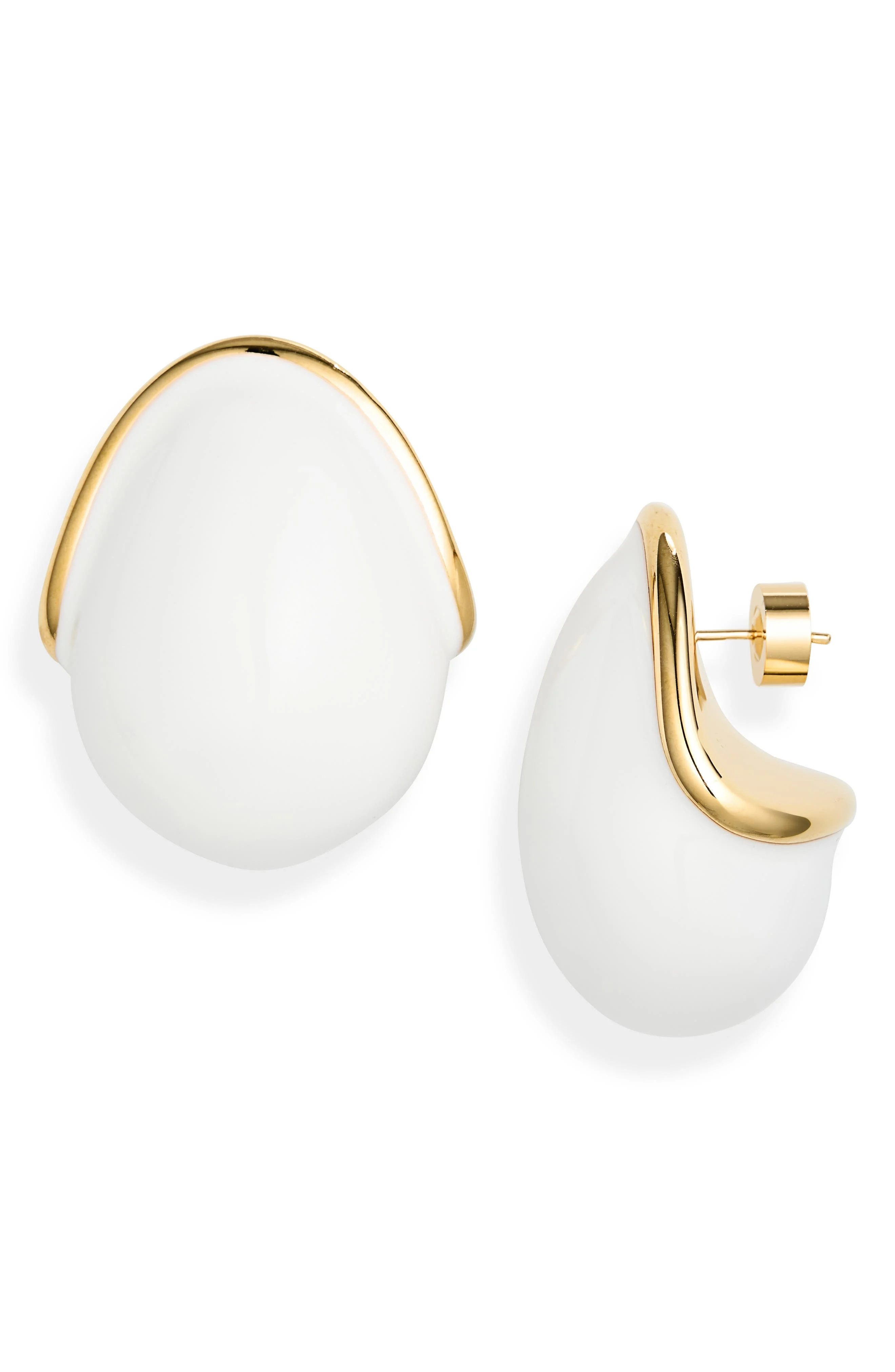 Oversized orbs in smooth enamel framed by golden rims bring modern minimalism to your lobes. Post back Enamel/goldtone plate Made in Italy