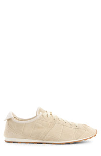 This low-top sneaker pushes boundaries with a sole that doubles as a geometric signature featuring neat circles and squares that leave a lasting impression. The croc-embossed suede upper adds rich texture, while the logo-debossed leather pull tab ensures every detail speaks to the French label’s elevated craftsmanship. Lace-up style Removable insole Leather upper and lining/synthetic sole Made in Portugal