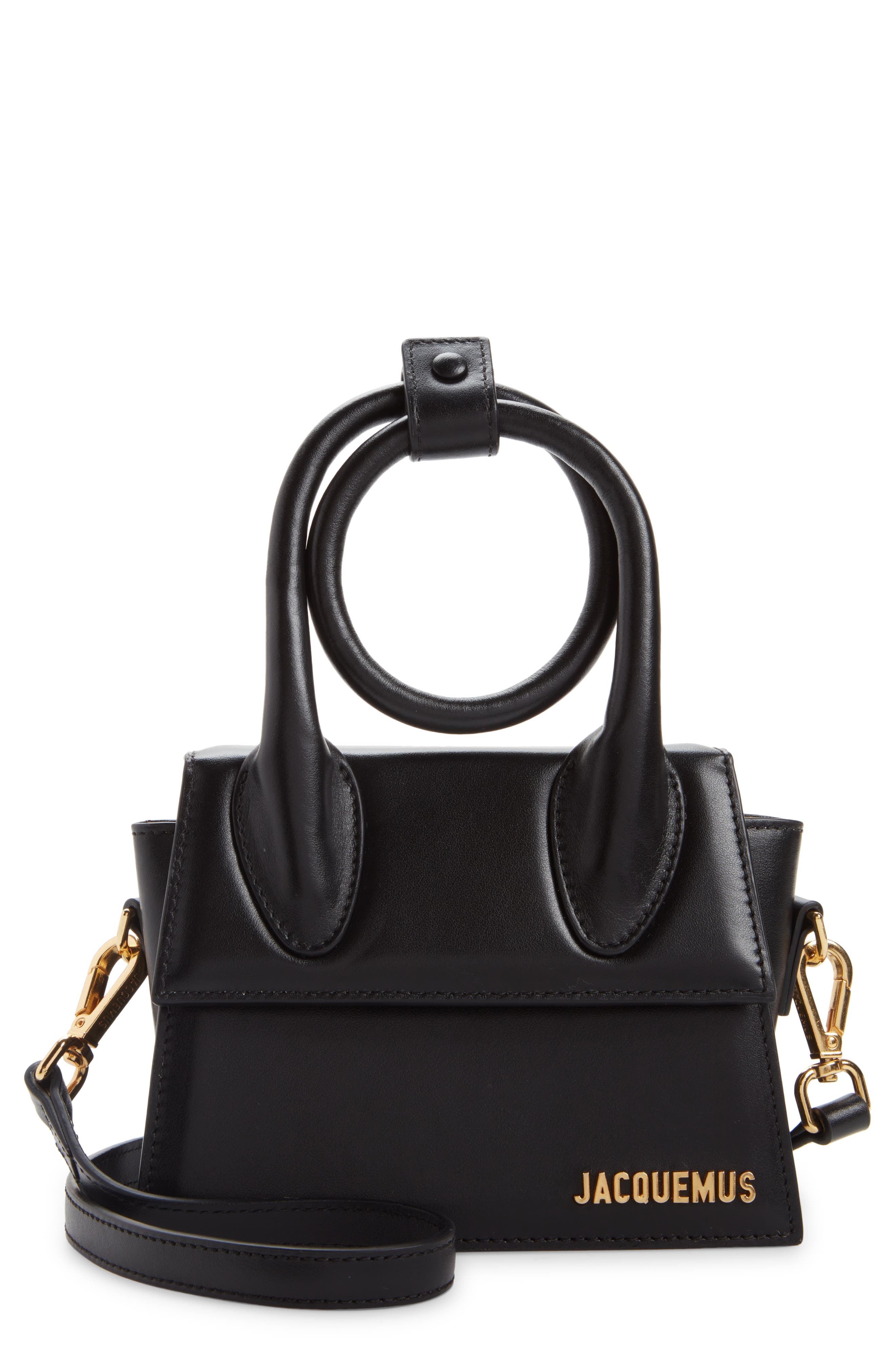 The innovative designer makes his mark with gleaming logo letters detailing this scaled-tiny structured bag crafted of smooth leather. A striking coiled top handle and removable strap offer carrying options for a pristine look. Magnetic-snap flap closure Top carry handle; removable, adjustable crossbody strap Interior wall pocket Structured silhouette with flat base for stability Lined Leather Made in Spain Designer Handbags