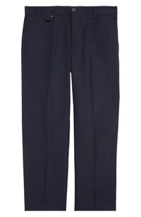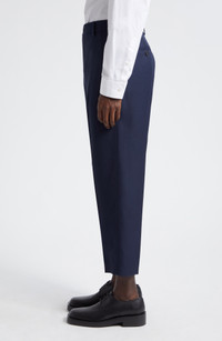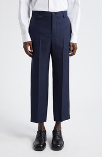 Crisp creases further the polished look of these slim-fit pants designed in a cropped length. Zip fly with button closure Front slant pockets; back button-welt pockets Stretch lining 100% viscose Dry clean Imported Designer Clothing