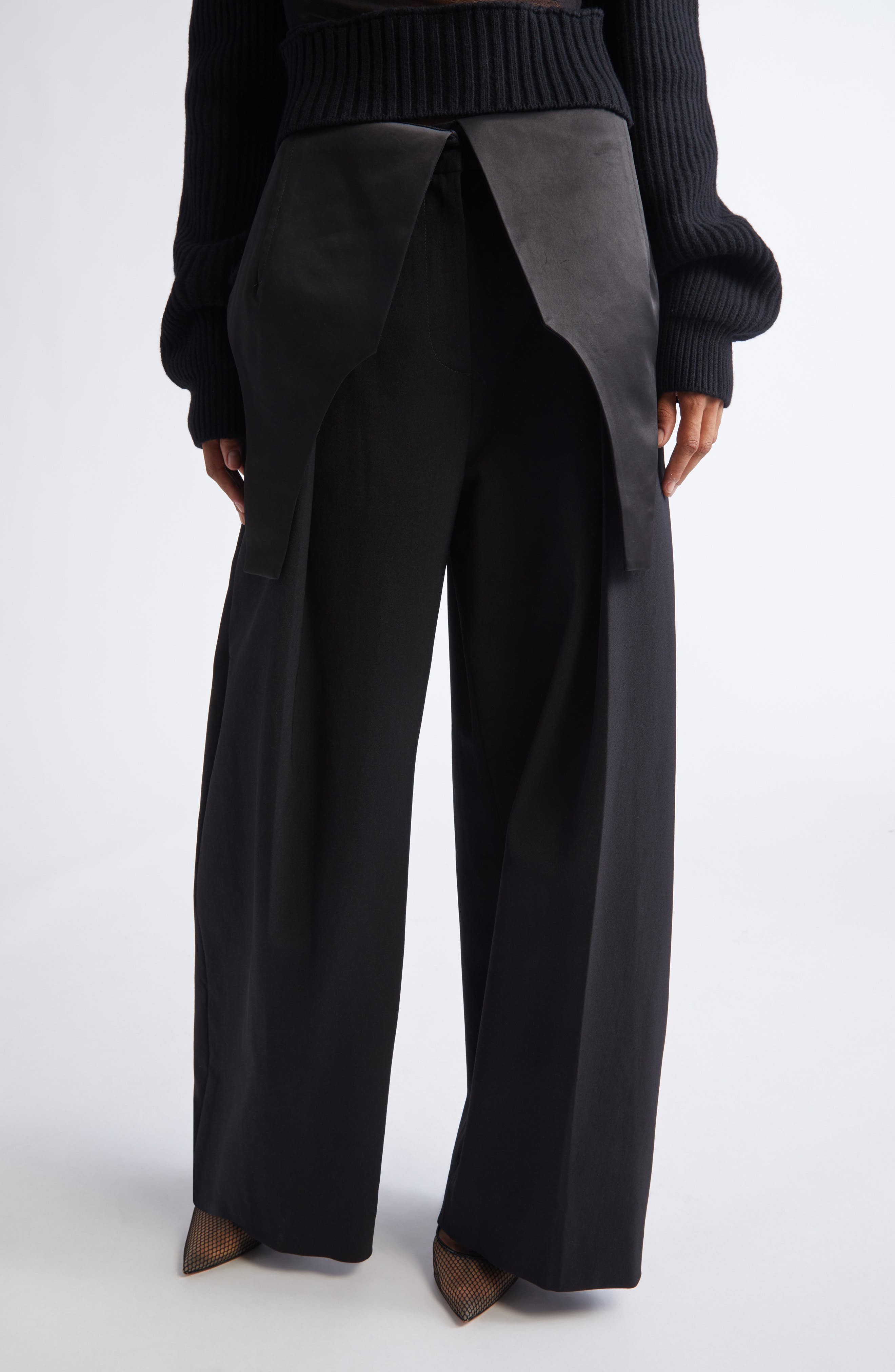 Jean Paul Gaultier Bodysuit Detail Tailored Wide Leg Pants in Black at Nordstrom