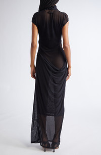 A tonal flocked logo brings understated branding to this mock-neck dress cut from diaphanous stretch mesh punctuated with flocked polka dots. Hidden back-zip closure Mock neck Cap sleeves Partially lined 94% polyamide, 6% elastane Dry clean or hand wash, dry flat Made in Portugal Designer Clothing